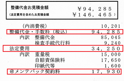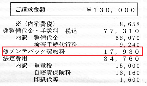整備代金と法定費用、メンテナスパック込みで